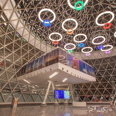 Dans le village monde actuel, la référence au globe est indéniable. Dans la continuité conceptuelle, le mouvement est l’essence du projet. Espace, volumétrie et scénographie, varient selon le parcours du voyageur. Il est question de proposer une expérience particulière au passager pour démystifier son voyage, et lui offrir un confort optimal.