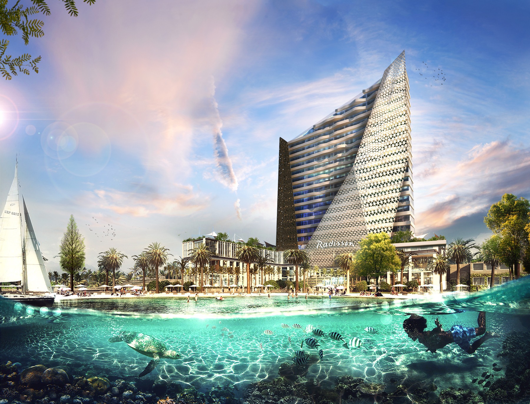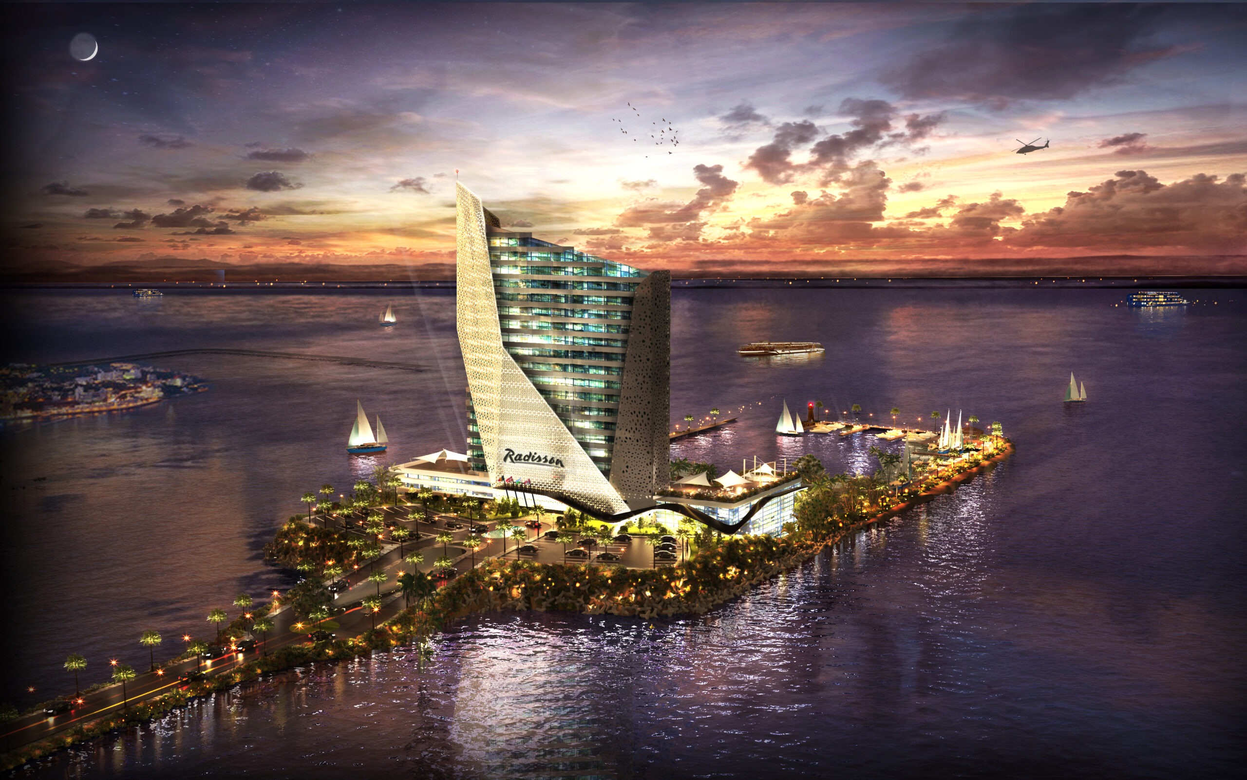 Implanté dans une île artificielle, l’hôtel Radisson Djibouti projette d’être le repère de la capitale, avec son architecture contemporaine et monumentale. Cet édifice cible une clientèle d’hommes d’affaires, avec le label « business hôtel », et offre les commodités d’un établissement 5 étoiles de luxe, avec marina au pied de celui-ci.