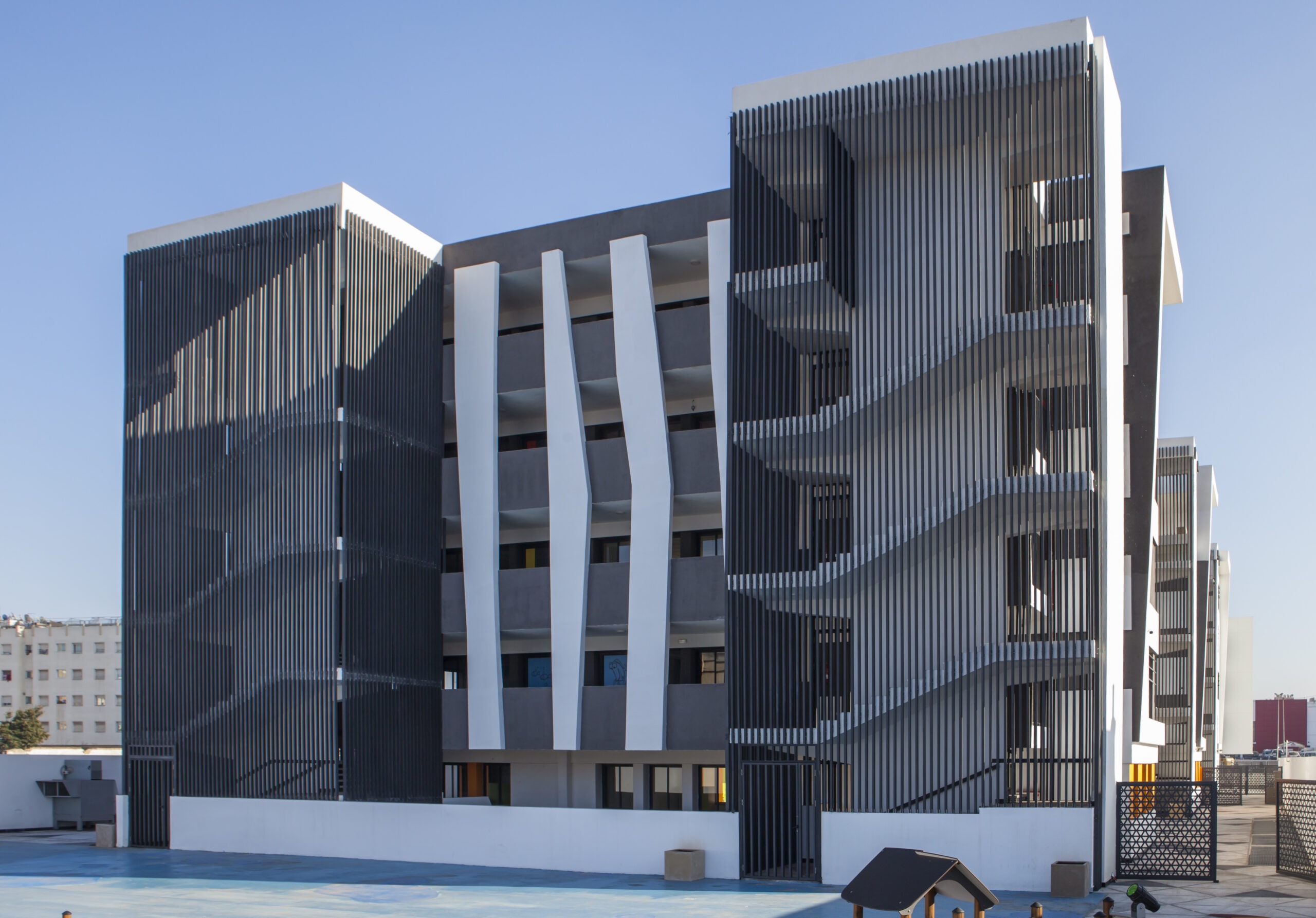 Dès les premiers jets d’esquisse, l’équipe voulait une architecture avec un fort appel dans son paysage urbain, à travers une géométrie à dominante triangulaire côtoyant des courbes par contraste, des auvents à grande portée et des couleurs vives. Une réflexion a été portée sur les proportions plein/vide des façades, créant ainsi un rapport ombre/lumière harmonieux à l’intérieur de l’établissement.